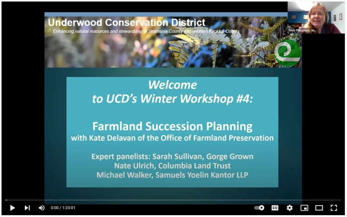 This workshop is for families who want to plan for the future as land management and ownership is passed from generation to generation. Careful succession planning can avoid common pitfalls and help families create the future that they want for their land. Kate Delavan with the WA State Conservation Commission’s Office of Farmland Preservation will provide an overview of tools, resources, and support for landowners to plan for succession and long-term farmland protection.